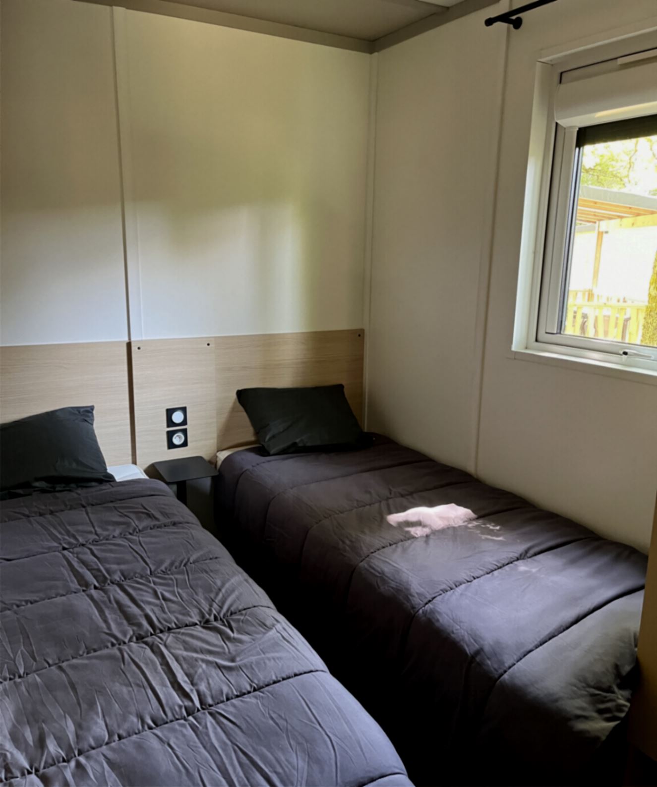 Sleeping area: one bedroom with 1 double bed (160*200), one bedroom with 2 single beds side by side (80*200), pillows and blankets provided