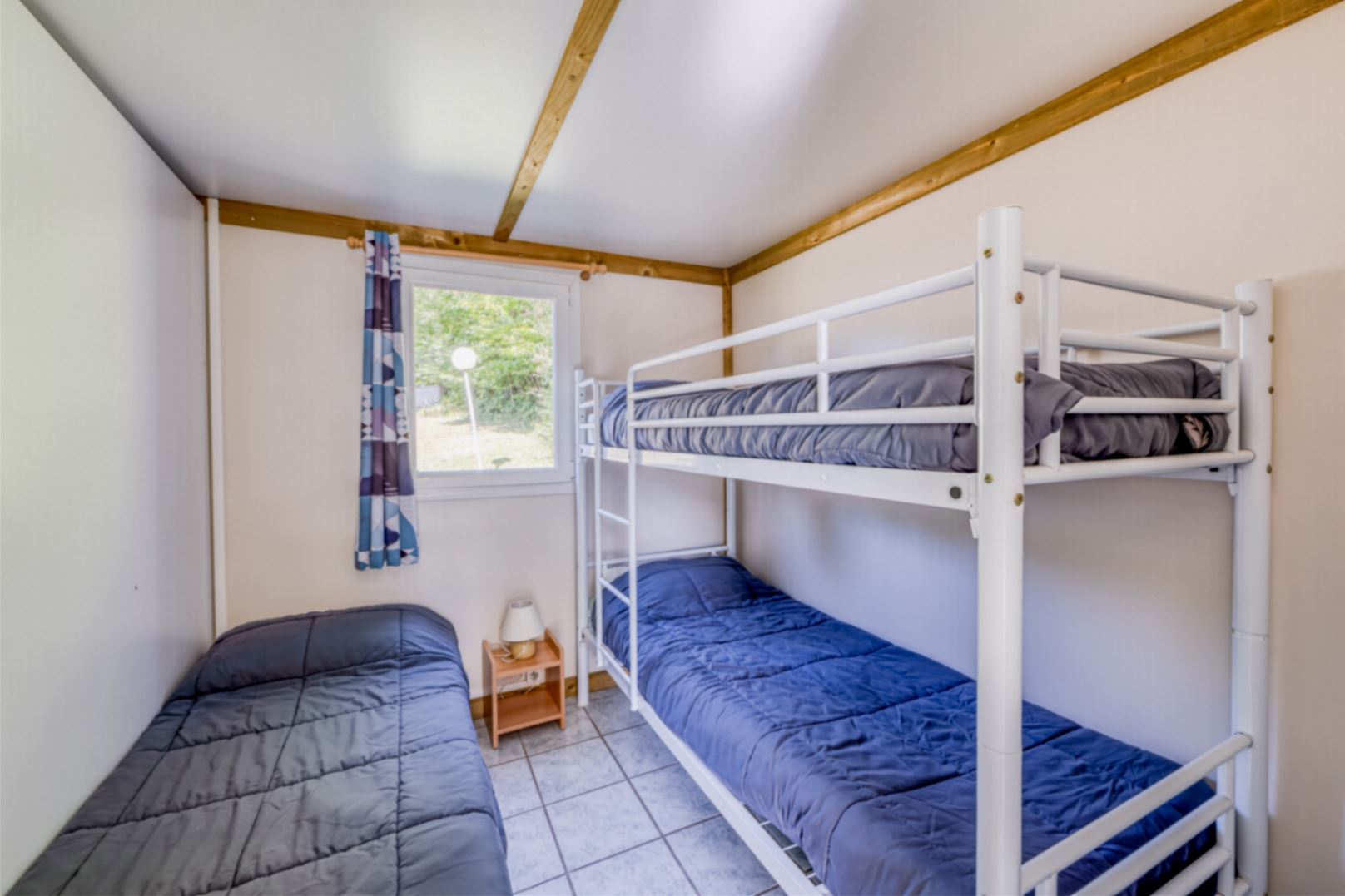 Sleeping area: one bedroom with 1 double bed (140×190), one bedroom with 3 single beds including 1 bunk bed (80×190), pillows and blankets provided